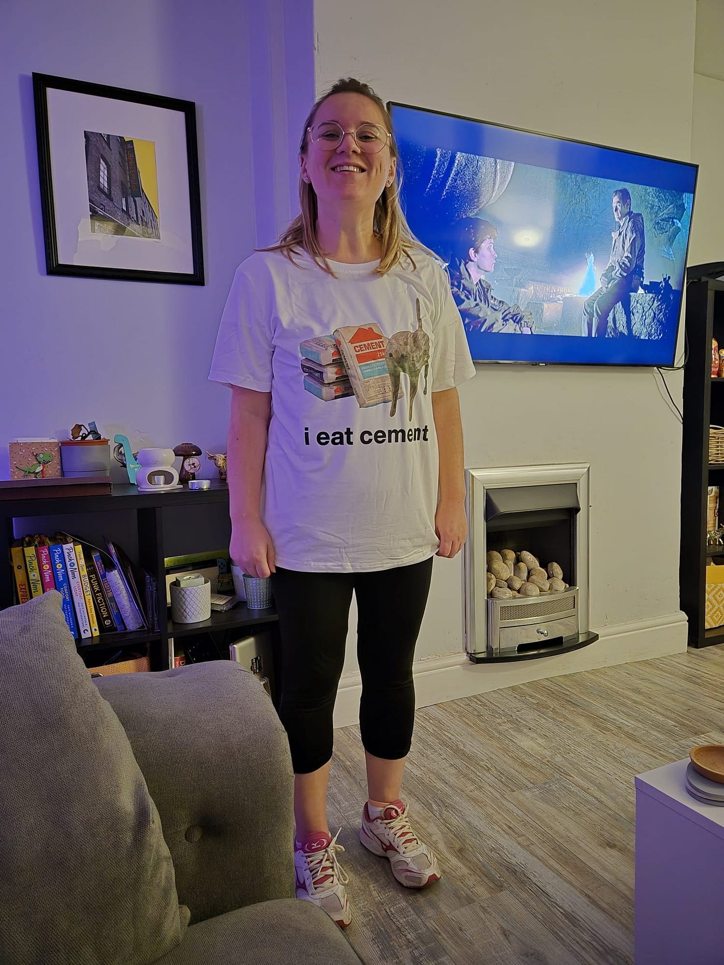*This was a pair of jogging bottoms and a hoodie from Vinted and I got them in a size 12 – which I’ve always been, or, not always been, but have been for a fucking long time – and they’re miles too big, which I’m annoyed about but what a brilliant thing to be annoyed about. Maybe I’m ready for a fucking size 10 mate.