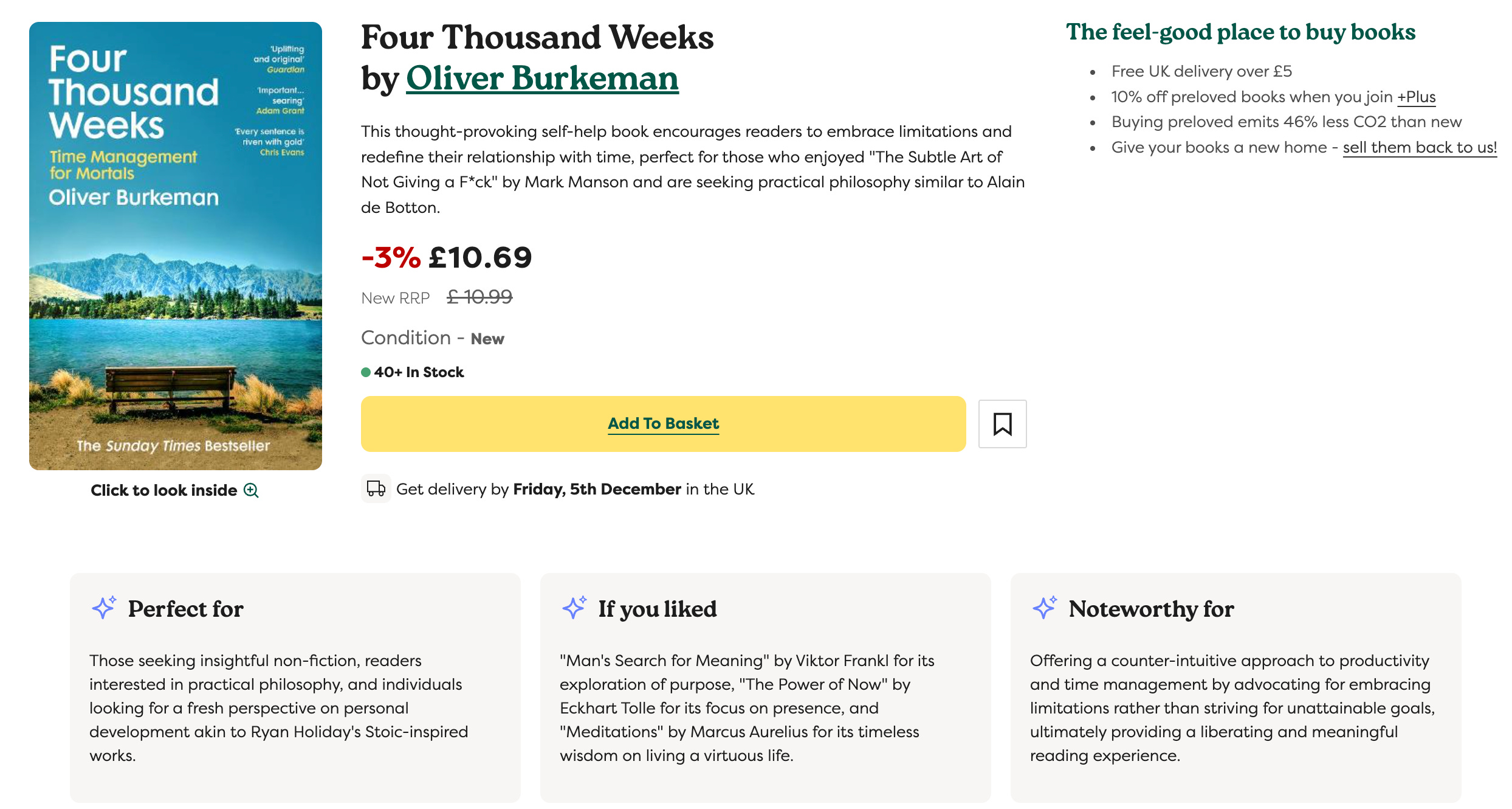 You see, World of Books’ AI would have me believe that my recent thinking (e.g. this newsletter from Spring), my recent feelings (to be discussed following six weeks of travel below) and my recent reading mean that either Four Thousand Weeks: Time Management for Mortals would be a perfect present for me or that I wrote it.