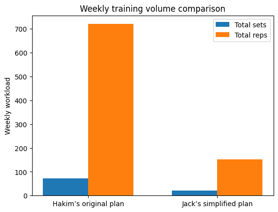 Someone aiming to do 700 reps a week across four sessions and seeing no results is far more likely to quit than someone doing 150 reps across two sessions and getting bigger and stronger.